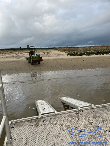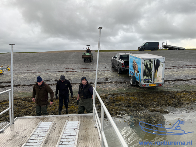 Eerder gingen wij altijd met de RIB naar het eiland, maar inmiddels varen wij met een ponton van Natuurmonumenten. Dit zorgt ervoor dat de tijd op het eiland om te werken langer kan zijn.